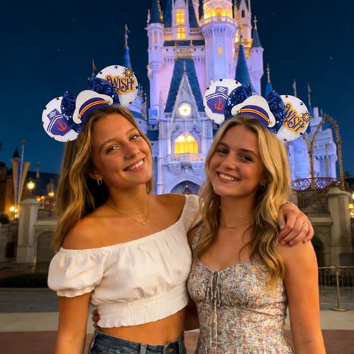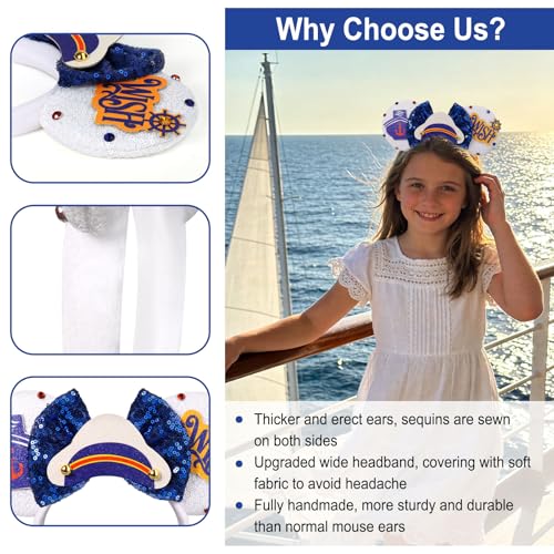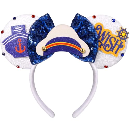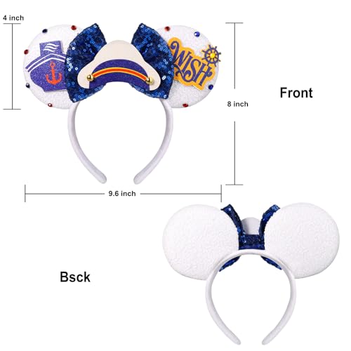 UNSPAZ Cruise Mouse Ears Headband, Extra Thick Mouse ears for Women Girls, Sequin Shiny Bow hairband for Cosplay Party Trip Hair Decorations (Cruise Wish)