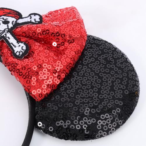 🚢【Swashbuckling Pirate Ears】Let the magic begin with this handmade, character inspired pirate ears! The embroidered skull and crossbones on red bow are sure to get you into magical adventure!