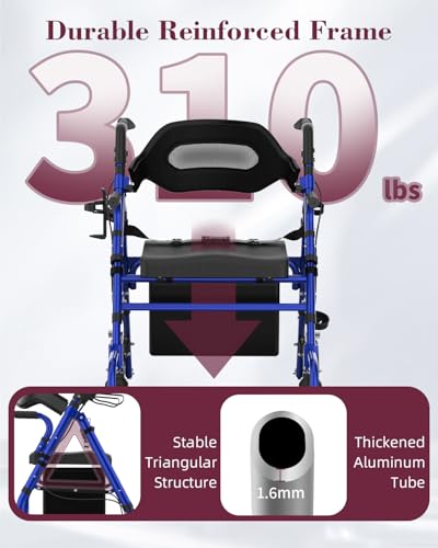 【𝐇𝐈𝐆𝐇 𝐖𝐄𝐈𝐆𝐇𝐓 𝐂𝐀𝐏𝐀𝐂𝐈𝐓𝐘 & 𝐃𝐔𝐑𝐀𝐁𝐋𝐄 𝐂𝐎𝐍𝐒𝐓𝐑𝐔𝐂𝐓𝐈𝐎𝐍】 This rollator walker with seat supports up to 310 lbs, making it ideal for seniors and users with mobility challenges. Its reinforced aluminium frame and high-strength components provide safe and stable support indoors and outdoors. The comfortable seat and armrests offer a reliable place to rest anytime.
