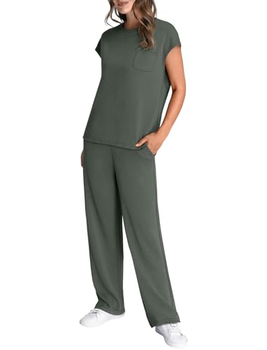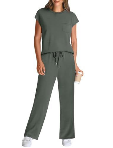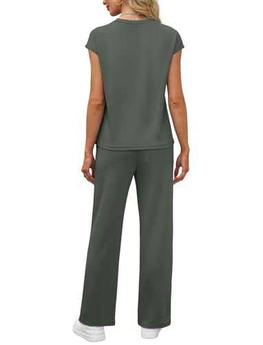 WIHOLL 2 Piece Sets for Women Casual Summer Travel Vacation Outfits Cap Sleeve Lounge Set