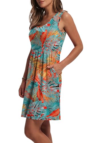 WIHOLL Women’s Summer Dress 2026 A-Line Sleeveless Casual Sundress with Pockets Floral/Solid