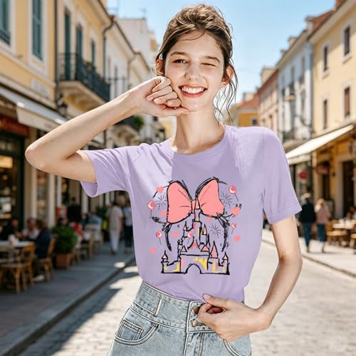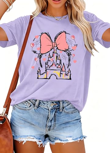 Women Magic Kingdom Shirt Castle Graphic Shirts Casual Family Vacation Holiday T Shirt Cute Short Sleeve Tee Top
