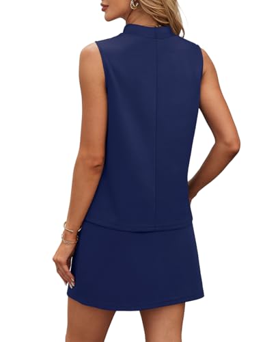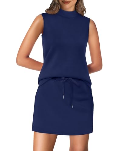 XIEERDUO Two Piece Skirt Sets for Women Summer Beach Vacation Resort Cruise Outfits Mock Neck Tops Tennis Skirt Sets