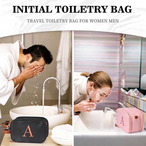 LARGE CAPACITY & WATERPROOF: Initial Toiletry Bag size: 9.4″L x 5.5″W x 6.3″H. Travel toiletry bag made of water-resistant material, easy to wipe clean and protects the toiletries from splashed water.