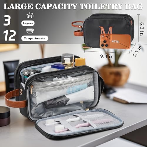 YOOLIFE Mens Toiletry Travel Bag – Toiletry Bag for Men | Gifts for Boyfriend Personalized Gifts for Men Father Husband | Travel Accessories Toiletries Water Resistant Dopp Kit Letter K Black