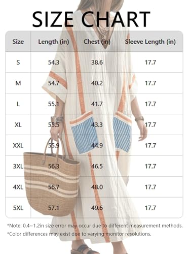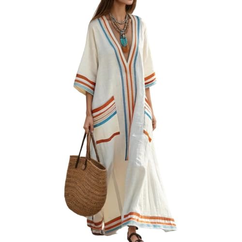ZOCANIA Women Boho Dress Striped V Neck Half Sleeve Oversized Dresses Casual Loose Flowy Vacation Beach Dress Cover Up Caftan